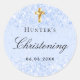 Christening light blue glitter sparkles boy cross classic round sticker