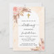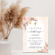 An arch frame and rose gold marble print as background. Decorated with rose gold and pink florals, roses and pampas grass. Personalize and add a name and details.