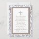 Baby blue and brown Christening invitation with decorative cross and paisley frame. Customize for baptism, communion or any special religious event.
