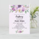 Christening violet flowers greenery cross invitation