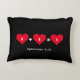 This is a simple Christian 1 PLUS 1 EQUALS 1 Couples Accent Pillow, with Christian Bible verse reference of Ephesians 5:31 - 'A man shall cleave to his wife and the two shall become one flesh.' The design of this Christian couples pillow shows three red love hearts with a 'plus' sign and an 'equals' sign to create a simple illustration of Christian marriage. The Scripture reference is CUSTOMIZABLE so you can choose to delete it or replace with your name(s), significant date (eg. wedding date?) or other preferred wording. Matching gifts available. This Christian love hearts pillow would make a great gift for husband and wife, newlyweds, wedding anniversary or Valentine's gift - or 'just because' gift. Choose from a wide selection of couples and anniversary Christian designs by Berean Designs.