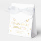 Classy favour boxes worked great for our wedding. We decided to fill these with gold wrapped chocolate kisses. Printing was clear and the boxes looked great on the tables at our wedding.