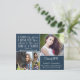 Christian Bible Verse Photo Collage Graduation Postcard: This design features our rustic blue background and Jeremiah 29:11 with space for 4 photos! The back is easy to customize with your information or other details. To personalize further, please click the "customize further" link and use the design tool to modify the design. If you need assistance or matching items, please contact us.