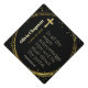 This graduation cap is for christian students who love God and want to show their faith in Christ. It features a black background with a gold cross and circle with the bible verse Proverbs 3:6 In all thy ways acknowledge Him and He shall direct thy paths. It's personalized with students name and graduating class year.