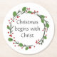 Christian Christmas Scripture Scripture with red, green Holly wreath Christmas begins with Christ quote makes a great Christmas party decor