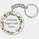 Christian Christmas Scripture Sticker Scripture with red, green Holly wreath Christmas begins with Christ