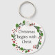Christian Christmas Scripture Sticker Scripture with red, green Holly wreath Christmas begins with Christ