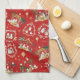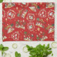 Christian Christmas Watercolor Nativity Red Kitchen Towel