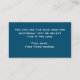 Customize this card with your Church's contact information or Pastor's information. You can personalize all the white text on this minimalistic modern ocean blue card. You can add your church's or organization name in clear simple white text. You can add your name, address, email and website in clear script. The back side is solid minimalistic blue with white script where you can add a Bible Verse, word or hope, Salvation message or other information for your church meeting or special event.