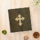 A cross fleury (or "flory") is a the heraldic name for a cross having fleurs-de-lys for its points, a slightly more decorative and quite popular version of the regular Christian cross. This is a faux wood veneer version, coloured as it is with a detailed scan of maple veneer inlaid on rosewood, making for a very unique organic and textured look. Nice as a basis for invitations, favours or gifts for weddings, christenings, first holy communions and confirmations. Just add your own text to personalize.