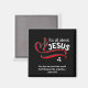 Christian Easter ALL ABOUT JESUS magnet with CUSTOMIZABLE TEXT, to celebrate Jesus Christ. The wording reads IT'S ALL ABOUT JESUS in white typography. The design shows a combined heart and cross with a flourish in red, black and white. There is CUSTOMIZABLE TEXT based on John 3:16 at the bottom which you can edit or delete. This Christian Easter magnet would be a great favour giveaway to your Resurrection Sunday church congregation, family and friends throughout the Easter season.