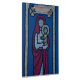 Cross stitched embroidered virgin Mary with Jesus Christ in her arms. Photography.