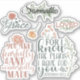 Christian faith sticker pack with watercolor flowers and greenery with Bible verses and inspirational words, a customizable name for a personalized blessing gift. Modern script typography with modern boho colours of peachy beige and teal green.