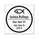 Stamp with christian fish and personalizable text.
