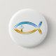 Christian Fish Symbol with Crucifix - Sky & Ground 2 Inch Round Button