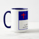 Christian flag - white with blue rectangle in top left and a red cross within. The words of the pledge within the body of the flag