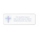Envoyez vos invitations en style avec ces élégantes étiquettes d'adresse de retour. Ce design présente une croix florale rose et lavande avec des lignes bleu aqua rayonnant du centre. À droite, vous trouverez votre nom et votre adresse pour personnaliser la typographie bleu-gris. Conçu par des artistes ©Tim Coffey et Susan Coffey.