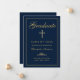 Christian Graduation Navy Blue Gold Cross Script Announcement