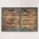 Christian Puzzle. "I can only imagine" lyrics on wood background. Cross and border with foliage.