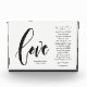 Personalize this modern and elegant 'Love" Script with the famous wedding bible passage from Corinthians 13 Love is Patient, Love is kind...