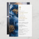 This elegant navy blue and gold floral Christian celebration of life and remembrance invitation can be personalized with your information in classic typography and a special photo on the reverse. Designed by Thisisnotme©