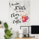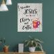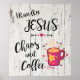 Brighten Your Home with this Unique "One of a Kind" Christian Poster! It Features the Comical Christian Quote..."I Run On Jesus, Chaos and Coffee"... and a Pink Coffee Mug with Steaming Hot Coffee...Surrounded by Colourful Flowers and Hearts!