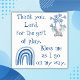 Monogrammed for you to insert your own prayer if you so choose, square poster. This cute boho theme with a blue rainbow and elephant, and blue text on a white background, states, Thank you, Lord, for the gift of play. Bless me as I go on my way.