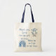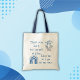 Monogrammed for you to insert your own prayer if you so choose, tote bag. This cute boho theme with a blue rainbow and elephant, and blue text states, Thank you, Lord, for the gift of play. Bless me as I go on my way.