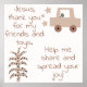 Monogrammed for you to insert your own prayer if you so choose, square poster. This cute boho theme truck and a tree, with brown text on a white background, state, Jesus, thank you for my friends and toys. Help me share and spread the joy!