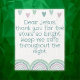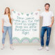 Monogrammed for you to insert your own prayer if you so choose, fleece blanket. This cute boho theme with green rainbows and hearts, and green text on a white background, states, Dear Jesus, thank you for the stars so bright. Keep me safe throughout the night.