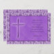 This Christian wedding invitation in lavender purple, has a large purple Cross on it, along with a FAUX embossed LOOK floral pattern background. All the text is customizable so you can change out the front Biblical verse Matthew 19:6 to a different one if you prefer. If there are any other wedding items you require in this design, please email your request to niteowlstudio@gmail.com.