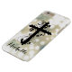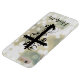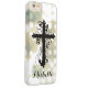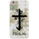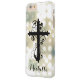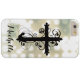 This personalized iPhone Case features a cross with a unique swirling design on a white lights background.