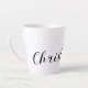 Latte coffee mug with a scripted design, features the flag of Freetown Christiania in a heart.
