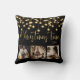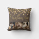 “Christmas time” in beautiful script on a brown background. Replace photos with 3 of your personal favourite photos. Gold faux string lights/ lanterns hanging down. Change the year and what a beautiful pillow. Elegant. A perfect gift.