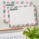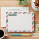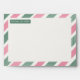 This Christmas envelope design features a sticker-like phrase "Special Delivery" on the front together with pink and green "air mail" stripes around the edge, an editable return address label on the back, and a pastel green lining. Pair this envelope with my holiday card range. Original artwork by Marketa Stengl.