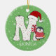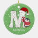 Christmas Alphabet M Santa Hat Penguin Snowflake Ceramic Ornament
