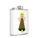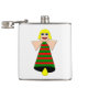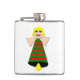 This awesome flask features a pretty Christmas Angel with blonde hair, blue eyes and a big smile. Her body is a festive green and red coloured bell with a yellow clapper at the bottom.