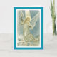 Beautiful vintage image of angel in a beam of light. Below in old script "To Wish You Christmas Happiness". Colours are white and turquoise and tan.