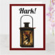 Originally written in 1739 by Charles Wesley, the beloved hymn Hark, the herald angels sing! has now become on of the most popular and recognizable Christmas songs of all time. Interestingly, the piece was originally titled Hymn for Christmas Day and did not include the now famous opening line! Thankfully, time has preserved this treasured piece of music and singing it together allows us to reflects on peace, joy, and the celebration of Christ’s birth this winter holiday. Celebrate your love of the Christmas season with this customizable design featuring a lantern lit by a luminescent candle with a silhouette of an angel child or cherubim playing a trumpet horn. The word "Hark" is written above in a festive font.
