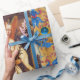CHRISTMAS ANGELS ,RED BLUE GEMS ,FLORAL PARCHMENT WRAPPING PAPER