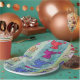 The Christmas angels herald the arrival of the infant Jesus by joyfully blowing their trumpets. On a green background, the angels are painted in red, pink and blue along with a white dove of peace and a Christmas star. The music of the heavenly angels will fill you with the spirit of Christmas when you choose this festive design.