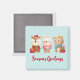 A magnet with a cute illustration featuring a bunny, a bear and a deer all dressed in festive gear. Adorable and whimsical.