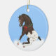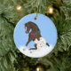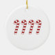 Brown Appaloosa Foal chews a candy cane while sitting in a snow bank. He wears a wreath around his neck. Reverse has candy canes.