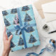 Christmas Artistic Blue Gold Tree Snowflakes Wrapping Paper