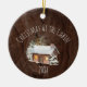 Celebrate Christmas at the cabin this year! This ornament features a rustic wood background image. On top of the background is a watercolor log cabin, trees and snow. The words "Christmas at the Cabin" arch above the barn, and below the illustration is room for you to customize the year. Upload your photo to the back of the ornament and add text!