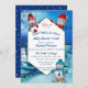 A Blue winter Holiday scene with a well wrapped showman for a this invitation card to personalize