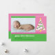 Cute and colourful baby girl photo card. Features a white Christmas tree on a pink and green colour palette with bright accents. Modern and elegant. Add your own picture and wording. Great for Baby's First Christmas. Can also be customized for a family card.