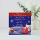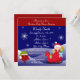 A festive baby shower invitation card that offers a red strip to the top of the card along with a blue snowy background with glittering snowflakes slowly floating to the bottom of the card. The background has been combined with a little Christmas baby standing in a red sleigh to the bottom right of the card along with a little robin to the left of the card. The front of the card also offers full party information details that can be personalized with your own Christmas baby shower party details. Flip the card over to find a Christmas red background colour on the back of the card too. Great for an It's A Girl, Boy or Neutral themed Christmas baby shower party celebration. Visit the store to find matching baby shower Christmas products to compliment your theme.