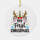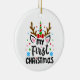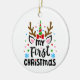 A adorable design for baby's first Christmas. This design says "My First Christmas". Illustration of unicorn antlers, horn and ears. Our ornaments are available in a variety of styles and materials.