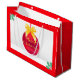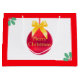 Red Christmas ball with yellow ribbon at the centre on white background gift bag. Text can be customized.